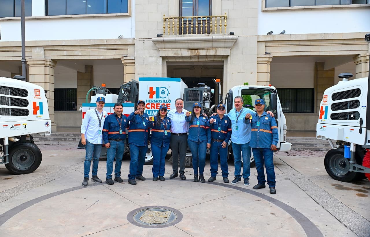 “Mi reconocimiento a ustedes, yo estoy seguro de que en mejores manos no puede estar este equipo. A partir de la entrega de estas barredoras nuevas, mecánicas que hoy estamos entregando, que se suman a las eléctricas, la gente lo va a notar en las calles, en los bulevares, ahí es donde se verá reflejado el trabajo que diariamente ustedes hacen por nuestra ciudad”, agregó en el evento, acompañado por Sergio Pavlovich Escalante, director de Servicios Públicos Municipales, y Ramón Corral, Oficial Mayor.