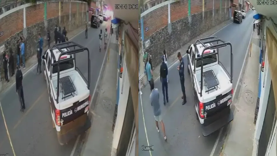Tras ello, el abogado regresó a la avenida y, como se aprecia en el video, varios elementos y otras personas vestidas de civil se le acercan de forma intimidatoria, lo voltean contra la pared y le quitan una bolsa que portaba.
